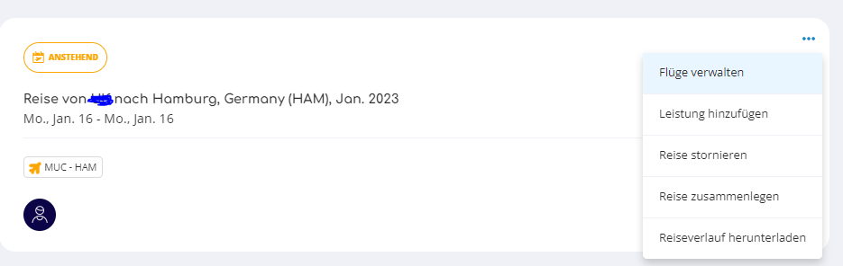 Über Flüge verwalten kannst du deine Reise am schnellsten stornieren, da die Stornierung sofort automatisch erfolgt.